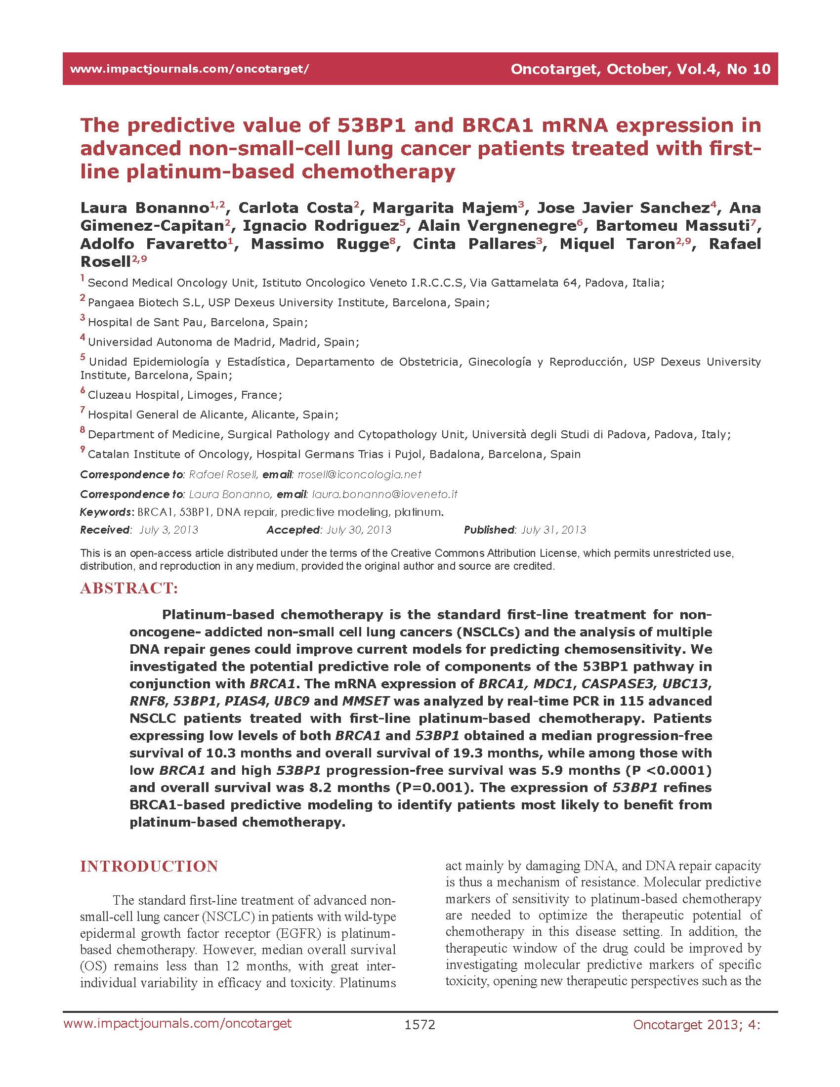 Two biomarker-directed randomized trials in European and Chinese patients with nonsmall-cell lung cancer: the BRCA1-RAP80 Expression Customization (BREC) studies.